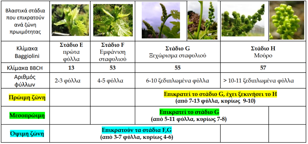 - Όψιμη: στάδια F–G, 3–7 φύλλα (κυρίως 4–6)