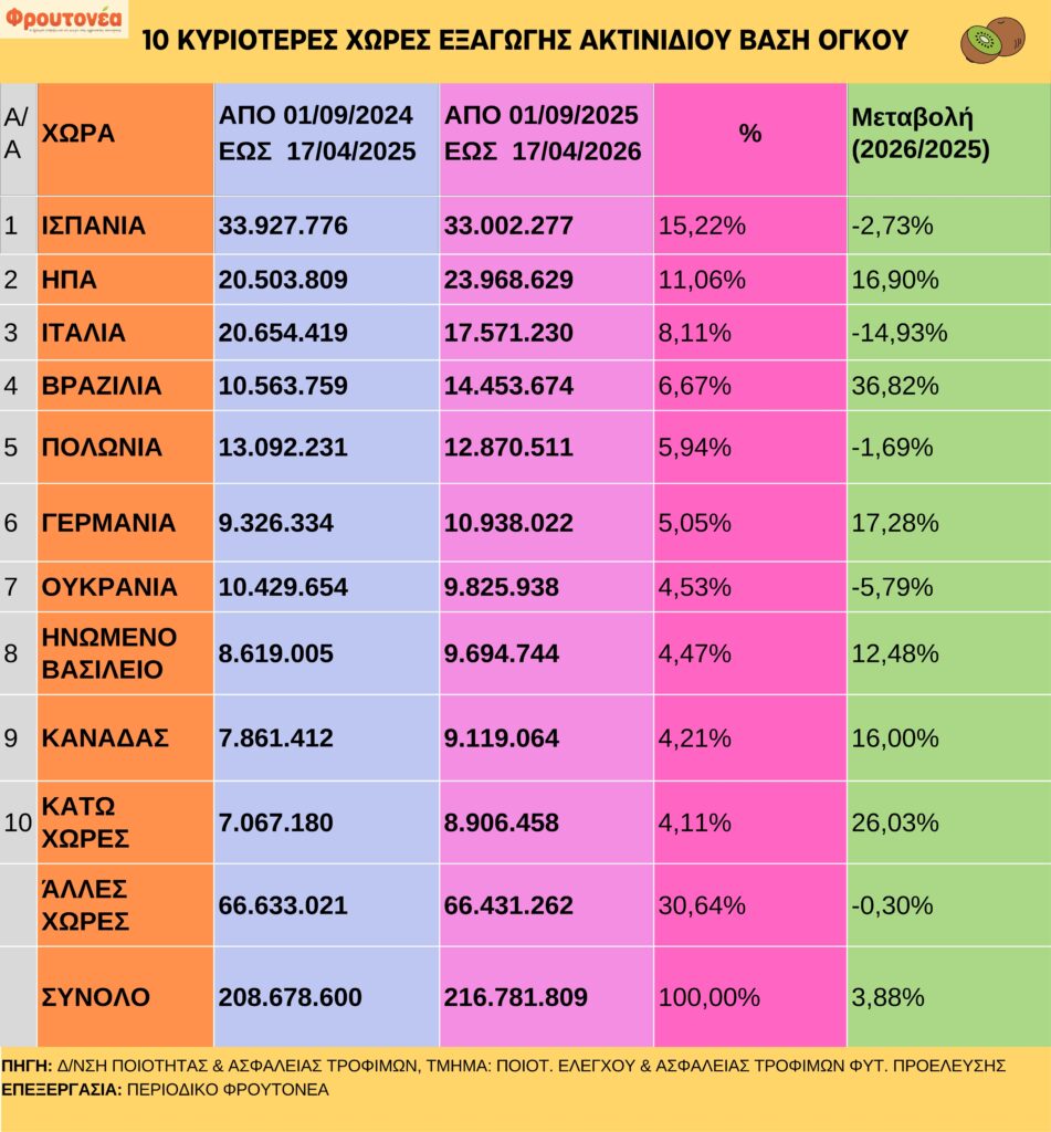 Οι εξαγωγές ακτινιδίου έως και 17.04.2026