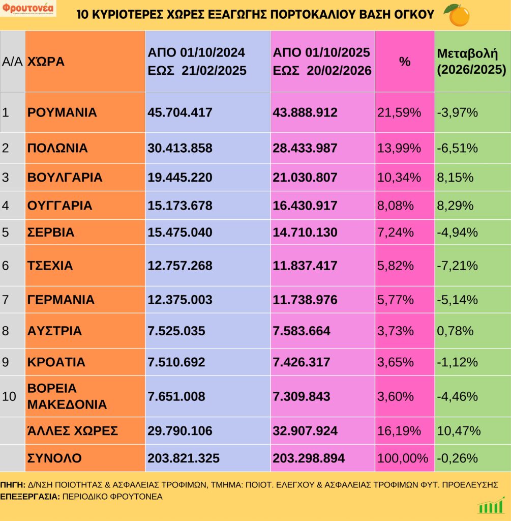 Πορτοκάλια: Ανάκαμψη των εξαγωγών έως και 20.2.26